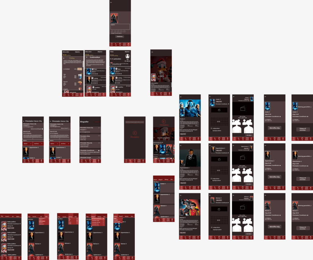 Syftet med projektet var att förbättra användarupplevelsen i valfri app genom att göra en interaktiv prototyp med god användarvänlighet och genomtänkta interaktioner. Jag valde att ta mig an Filmstadens app efter att jag lyckades boka biobiljetter i fel stadsdel utan att veta om det förrän jag fick biljetterna nekade i dörren. I min prototyp fokuserade jag främst på förbättrad feedback samt att skapa ett gränssnitt som gör applikationen mer användarvänlig och engagerande. Jag lade bland annat till översikt innan köp, vy från platserna i salongen samt en lättillgänglig favorit-markering av biografer. Prototypen skapades i Figma med många interaktioner och konsekvent feedback.